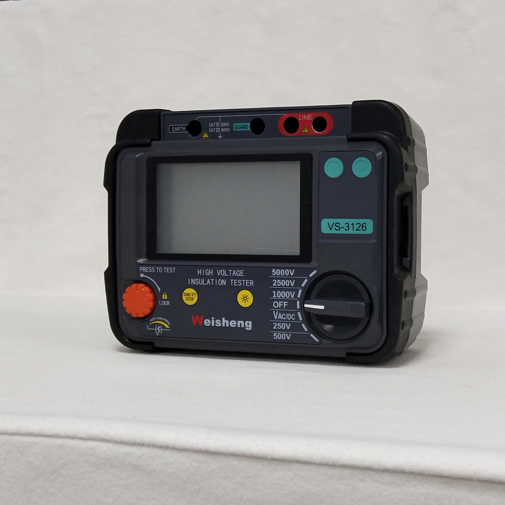 Weshine® VS-3126 ఒక బ్యాటరీ శక్తితో పనిచేస్తుందిఅనలాగ్ ఇన్సులేషన్ టెస్టర్డిజిటల్ మరియు అనలాగ్ ఆర్క్ డిస్ప్లేతో, కేబుల్స్, రొటేటింగ్ ప్లాంట్ మెషినరీ, ట్రాన్స్ఫార్మర్లు, స్విచ్ గేర్ మరియు ఇండస్ట్రియల్ అప్లికేషన్ల నిర్వహణ మరియు సర్వీసింగ్లో అధిక వోల్టేజ్ ఇన్సులేషన్ రెసిస్టెన్స్ టెస్టింగ్ కోసం రూపొందించబడింది.